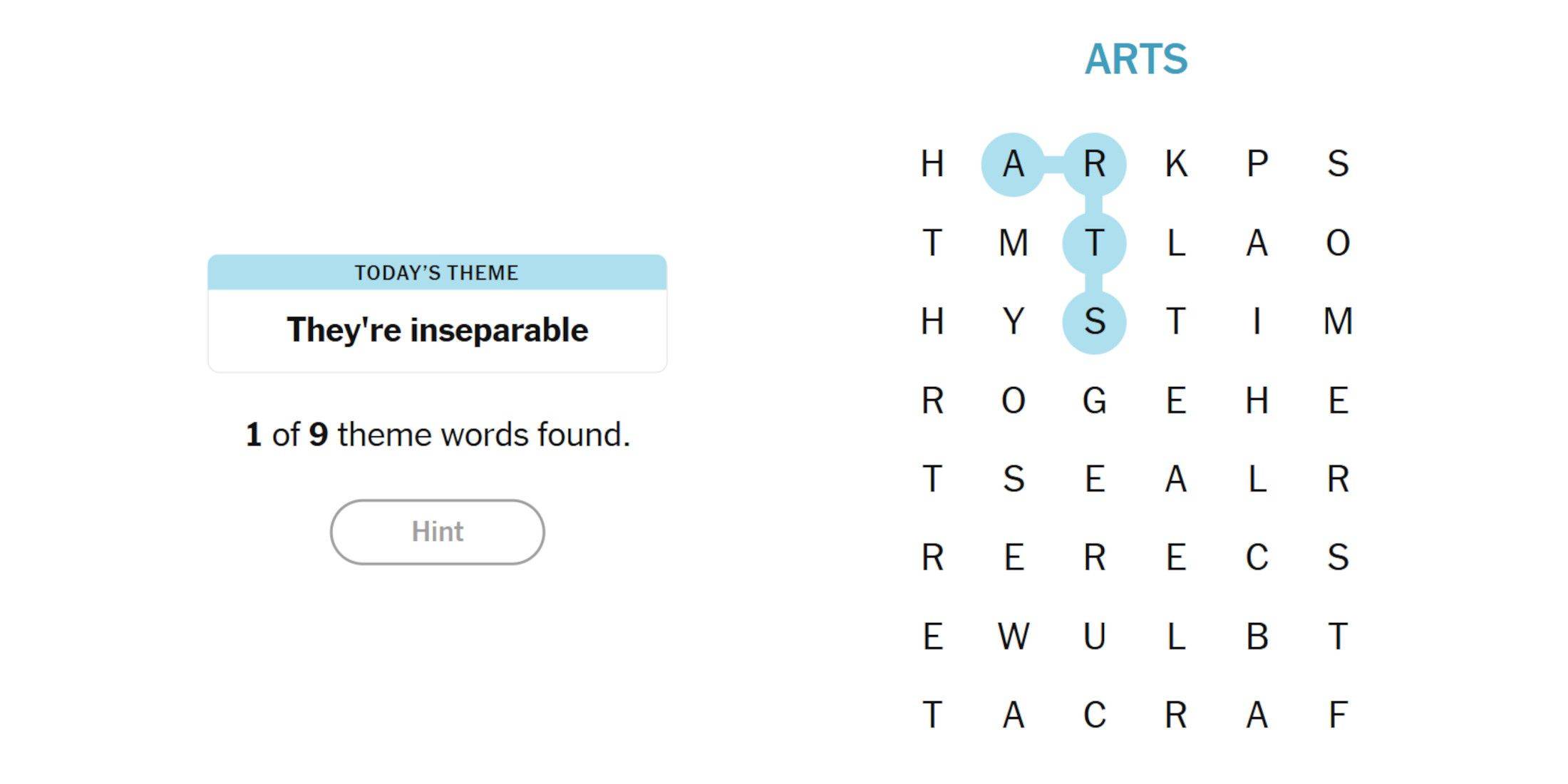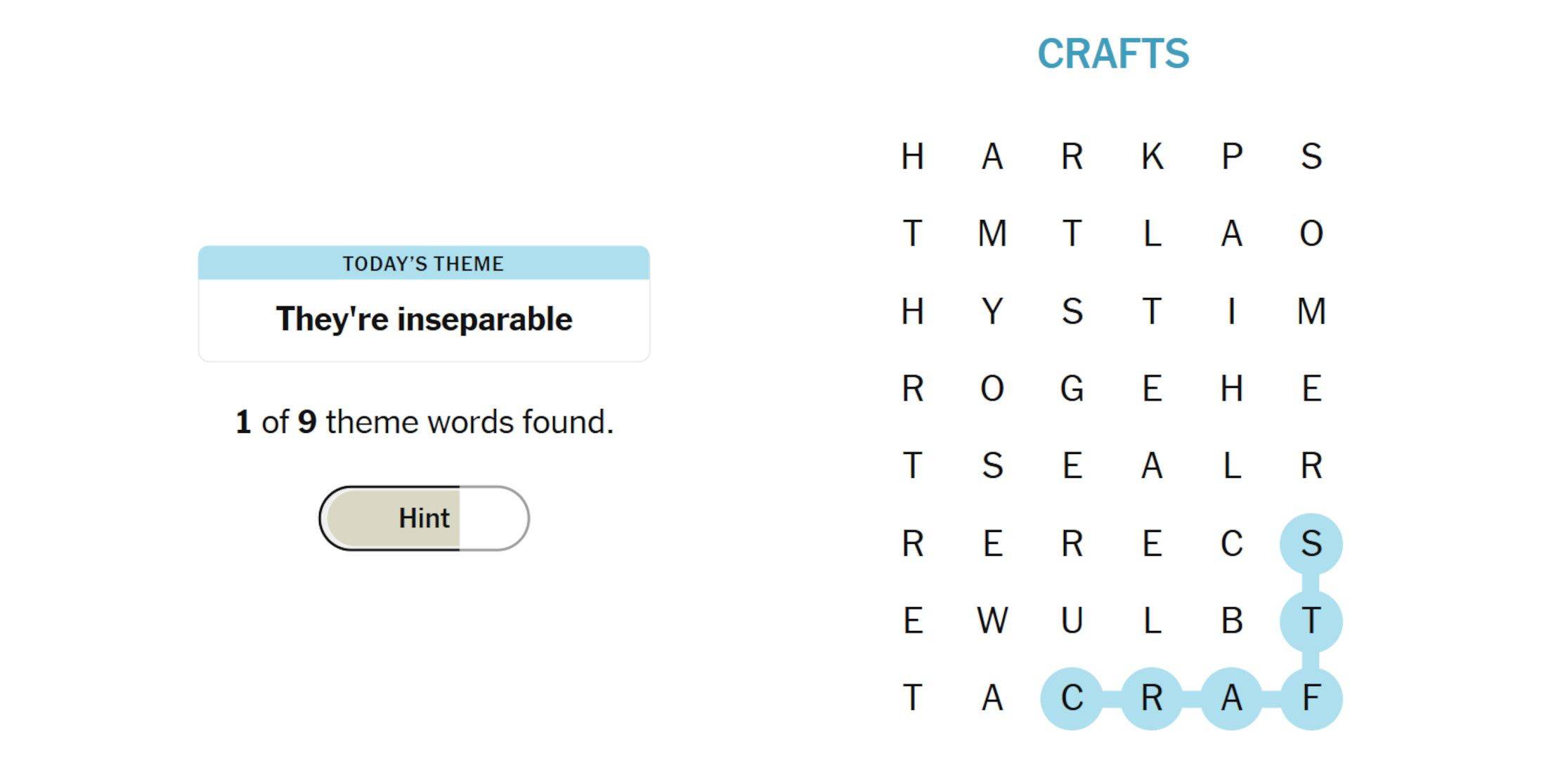 Bekämpfen Sie das Puzzle des heutigen Strangs, ein Wortspiel, das die Spieler herausfordert, ein Thema zu entschlüsseln und versteckte Wörter innerhalb eines Buchstabensnetzes zu finden. Der Erfolg erfordert das Identifizieren des Themas mit einem einzelnen Hinweis und dann, anschließend alle Wörter aufzudecken.