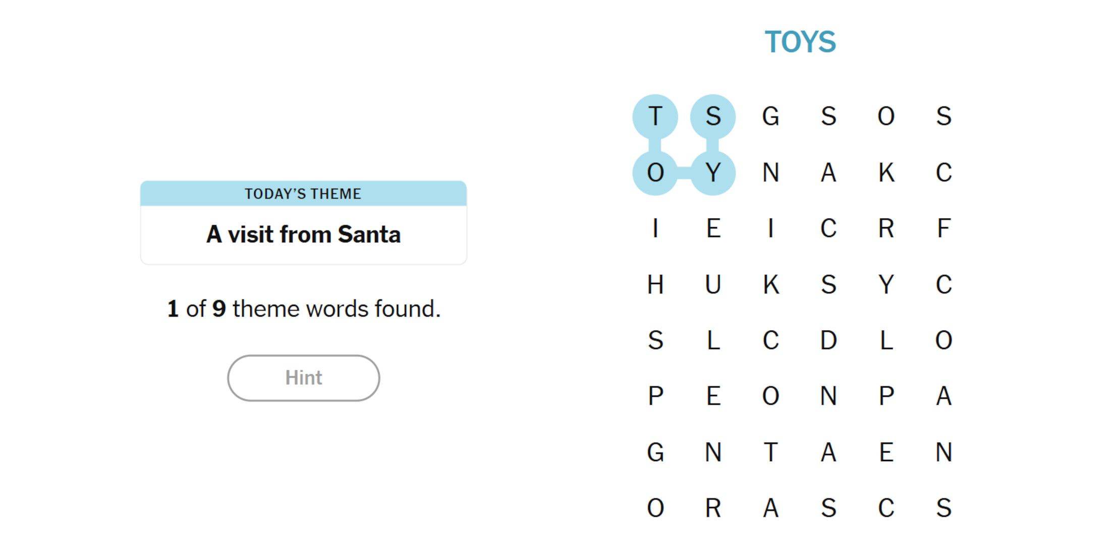 Le thème du puzzle reflète les cadeaux de Noël courants.Jouez à Strands sur le site Web du New York Times Games, accessible sur la plupart des appareils.