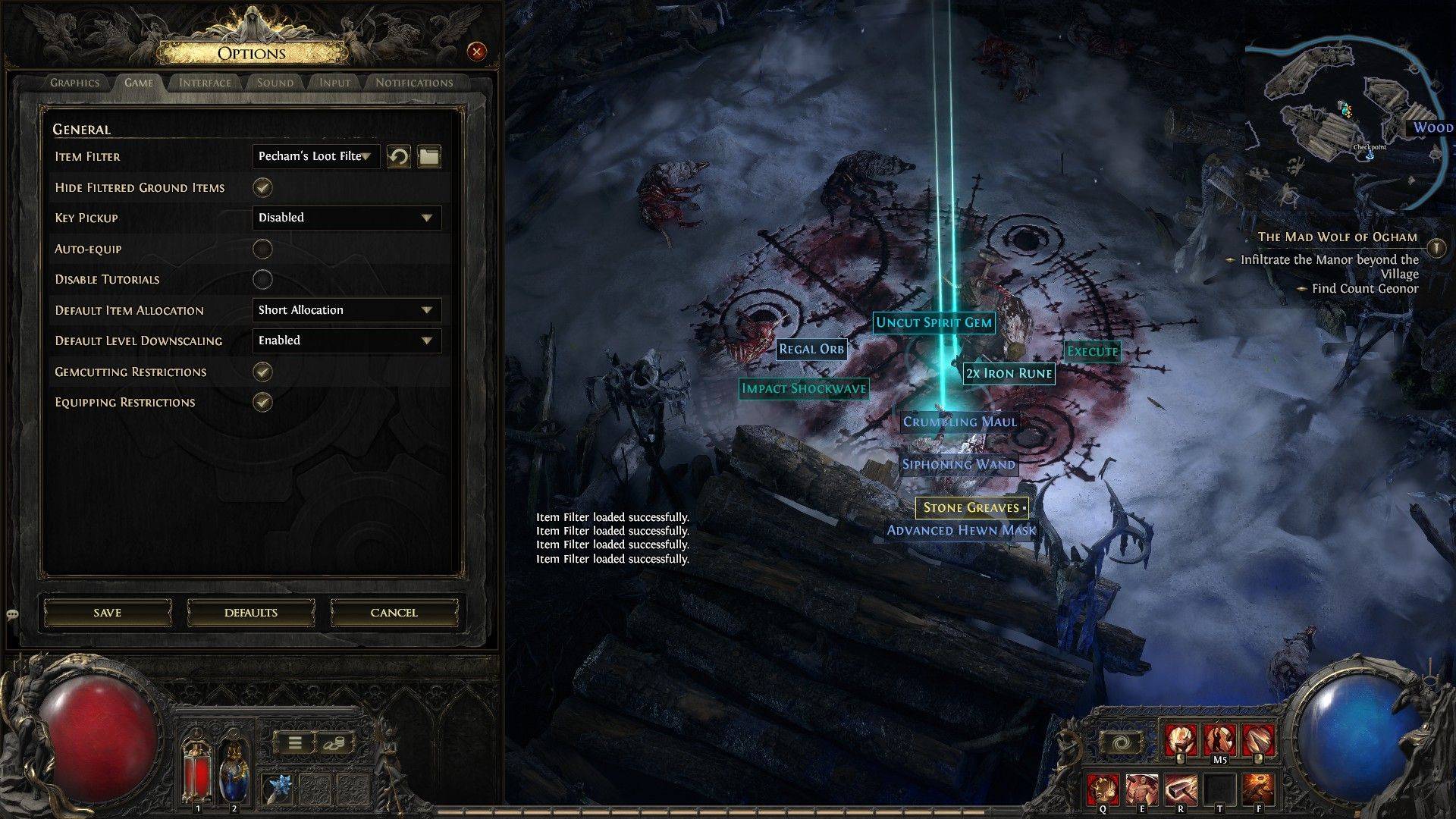 ウェブサイトで戦利品フィルターをたどった後、亡命2のオープンパスを開き、オプションメニューに移動します。 [ゲーム]タブに移動すると、上部に「アイテムフィルター」オプションがあります。ドロップダウンメニューから従ったフィルターを選択し、[保存]をクリックします。それ以降、ドロップされたアイテムには、有効になったフィルターに応じてラベル付け、色、または添付され、ゲームエクスペリエンスを向上させます。