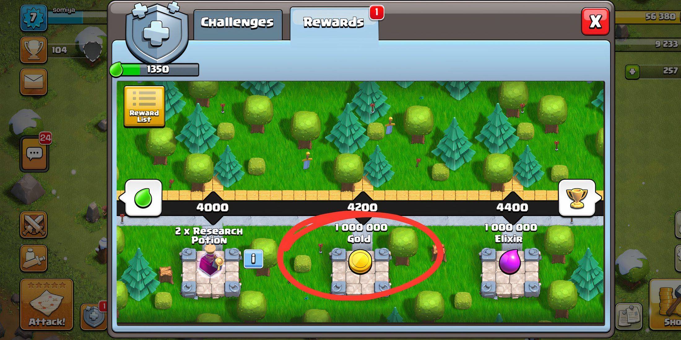 액티브 챌린지를 완료하여 상당한 골드 보상을 획득하세요. 이러한 챌린지는 적 구조물 파괴부터 건물 업그레이드, 승리 별 획득까지 다양한 작업을 포함합니다. 방패 아이콘(왼쪽 하단)을 통해 챌린지에 액세스하세요.