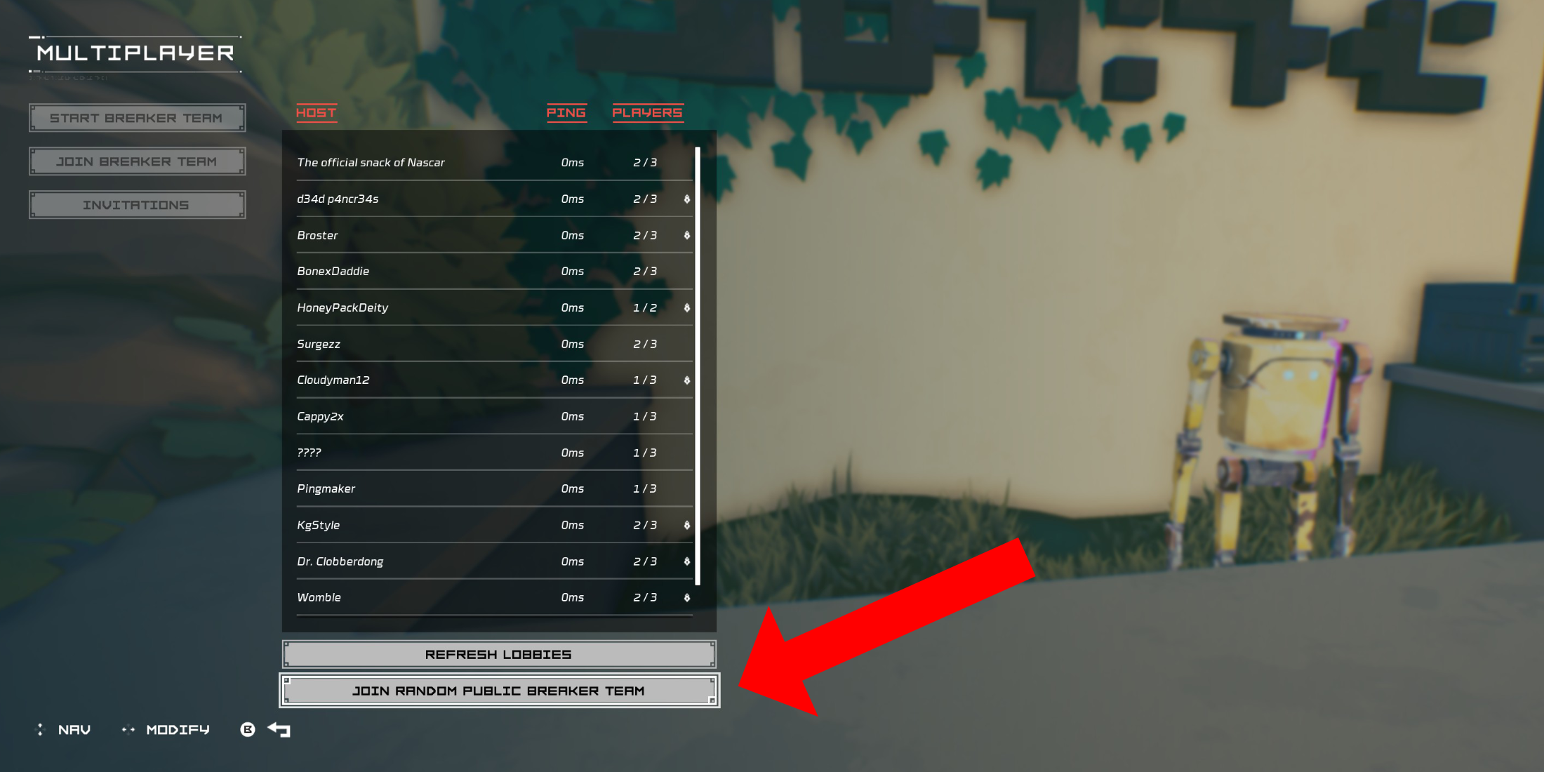 Your team might also appear in the "Join Breaker Team" menu. If all else fails, your friend can search this list to join directly.