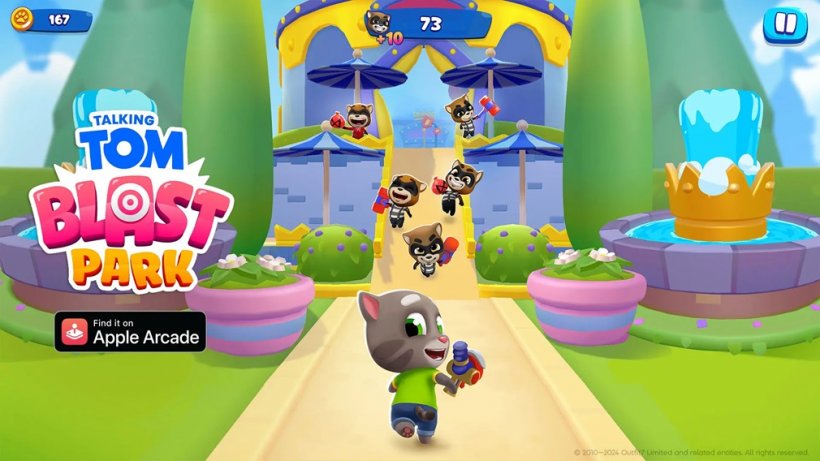 Talking Tom Blast Park é o primeiro exclusivo da Apple Arcade da Outfit7, jogável agora no iPhone, iPad, Mac, Apple TV e Apple Vision Pro.