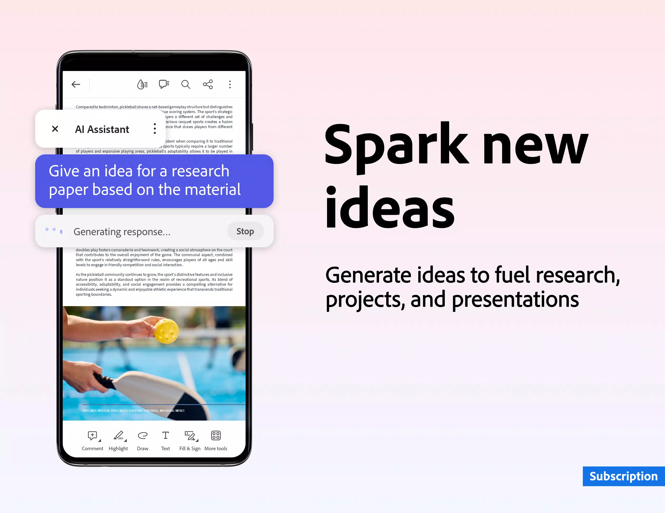- 使用Adobe掃描來捕獲文檔並在Adobe Acrobat Reader中打開它們,以採取進一步的操作,例如填充,簽名,評論和共享。