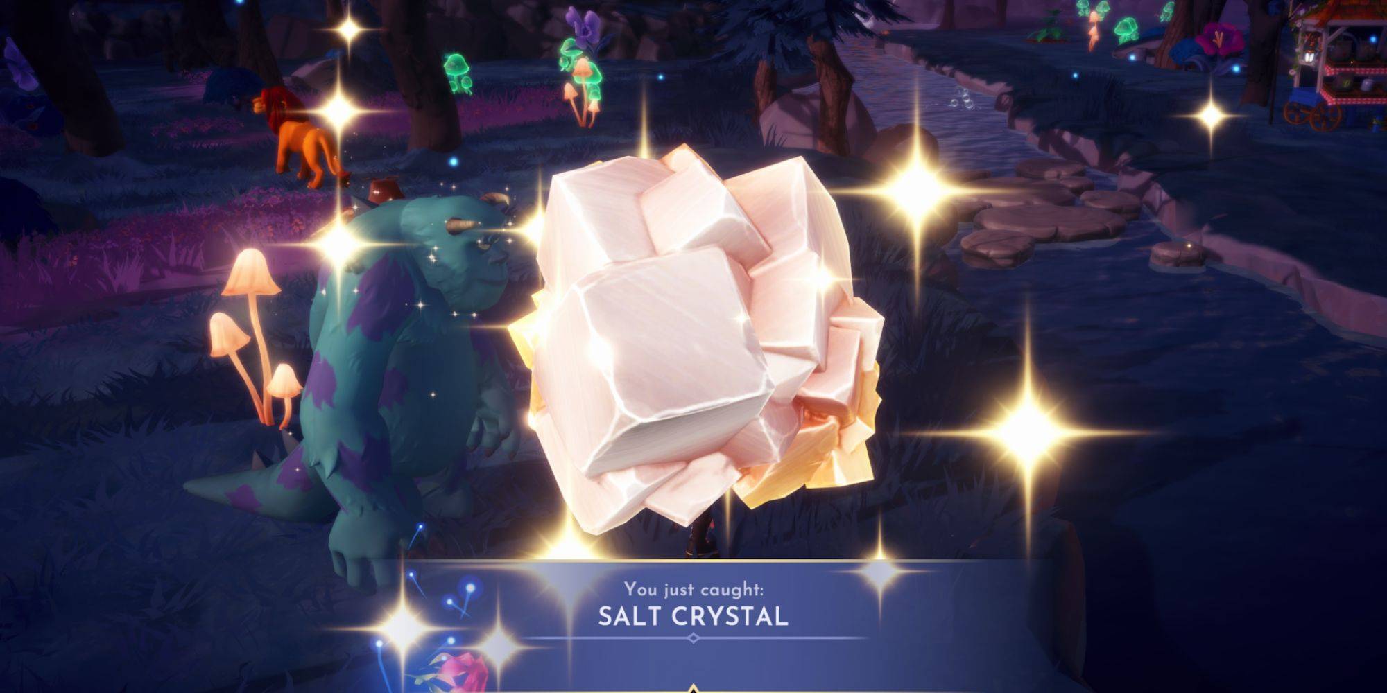 要收集鹽晶體,請裝備釣魚竿,並在沒有氣泡的情況下將線鑄在水中。在這些斑點中,鹽晶體很常見,您不必與許多其他材料抗衡。您將能夠立即收集很多。
