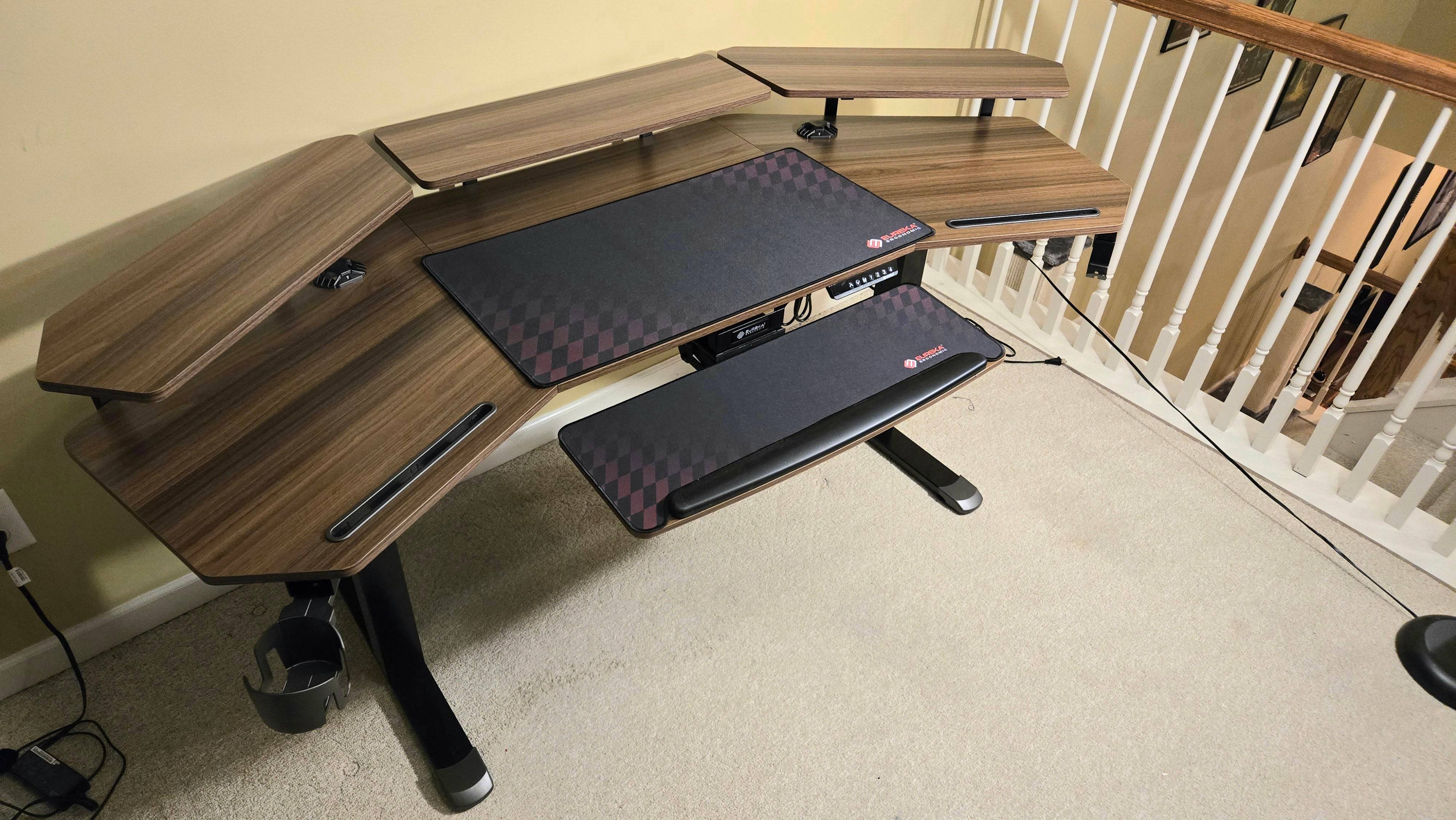儘管L形遊戲台不太常見,但它們非常適合轉角設置。 Toughdesk 500L的設計考慮了遊戲玩家,其電纜管理和內置RGB照明與Razer Chroma和TT RGB Plus同步。膨脹的鼠標墊涵蓋了主桌和側桌,使其成為全面的遊戲解決方案。但是,要準備以$ 1,500的價格為$ 1,500。